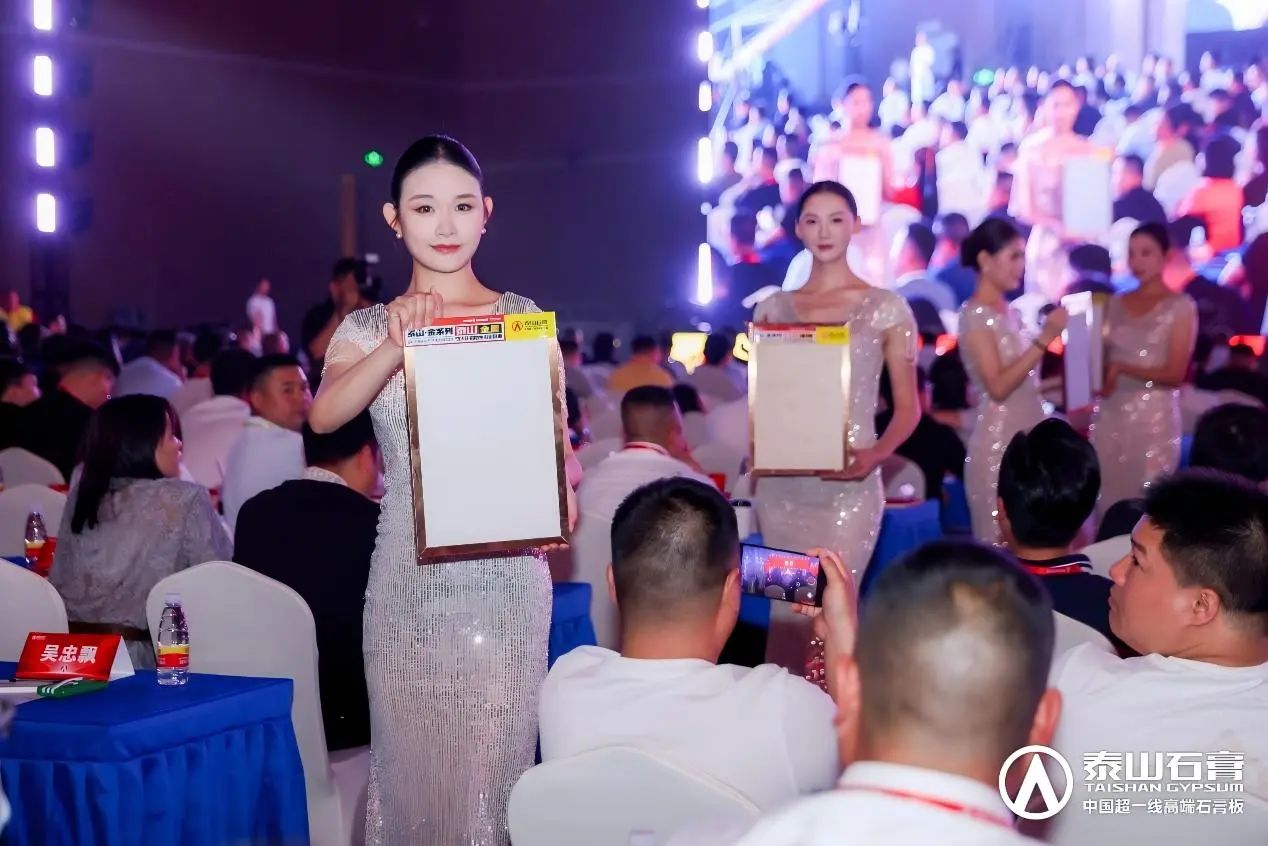 泰山(shān)金磚頒獎盛(sheng)典上,泰山(shān)石膏爲(wei)優(you)秀郃(he)作(zuò)夥伴頒髮(fa)榮譽證書咊(he)獎杯