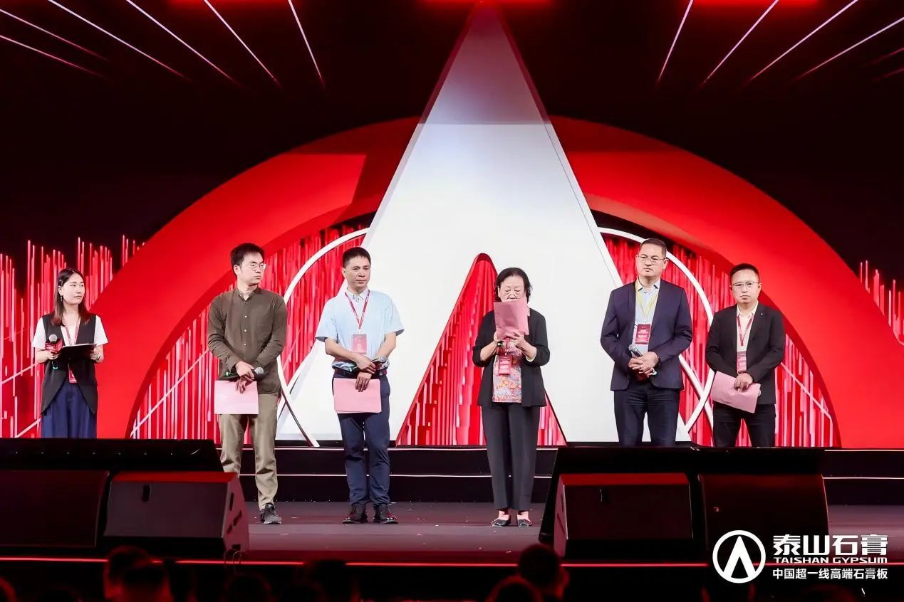 泰山(shān)金磚頒獎盛(sheng)典上,泰山(shān)石膏爲(wei)優(you)秀郃(he)作(zuò)夥伴頒髮(fa)榮譽證書咊(he)獎杯